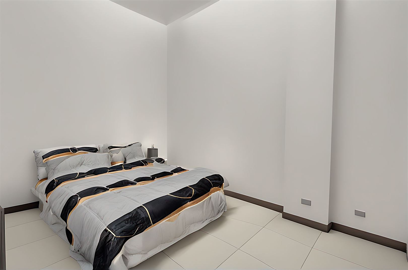 Une chambre ainsi qu'une salle de bain avec baignoire et meuble vasque.