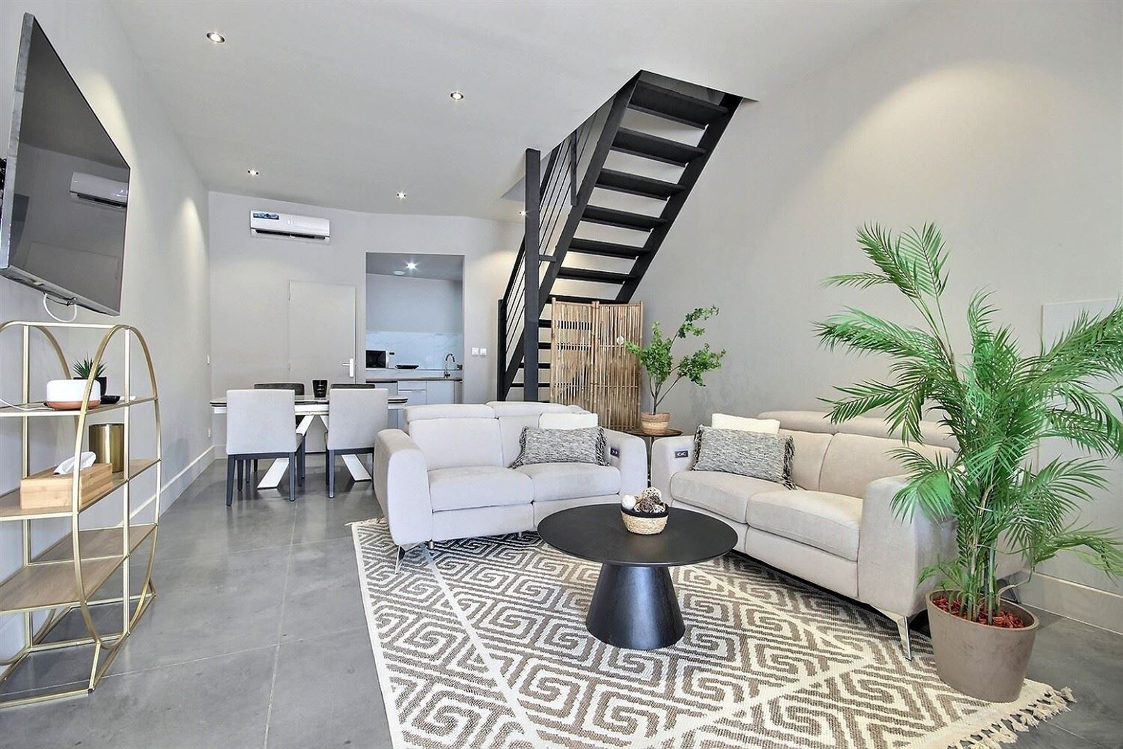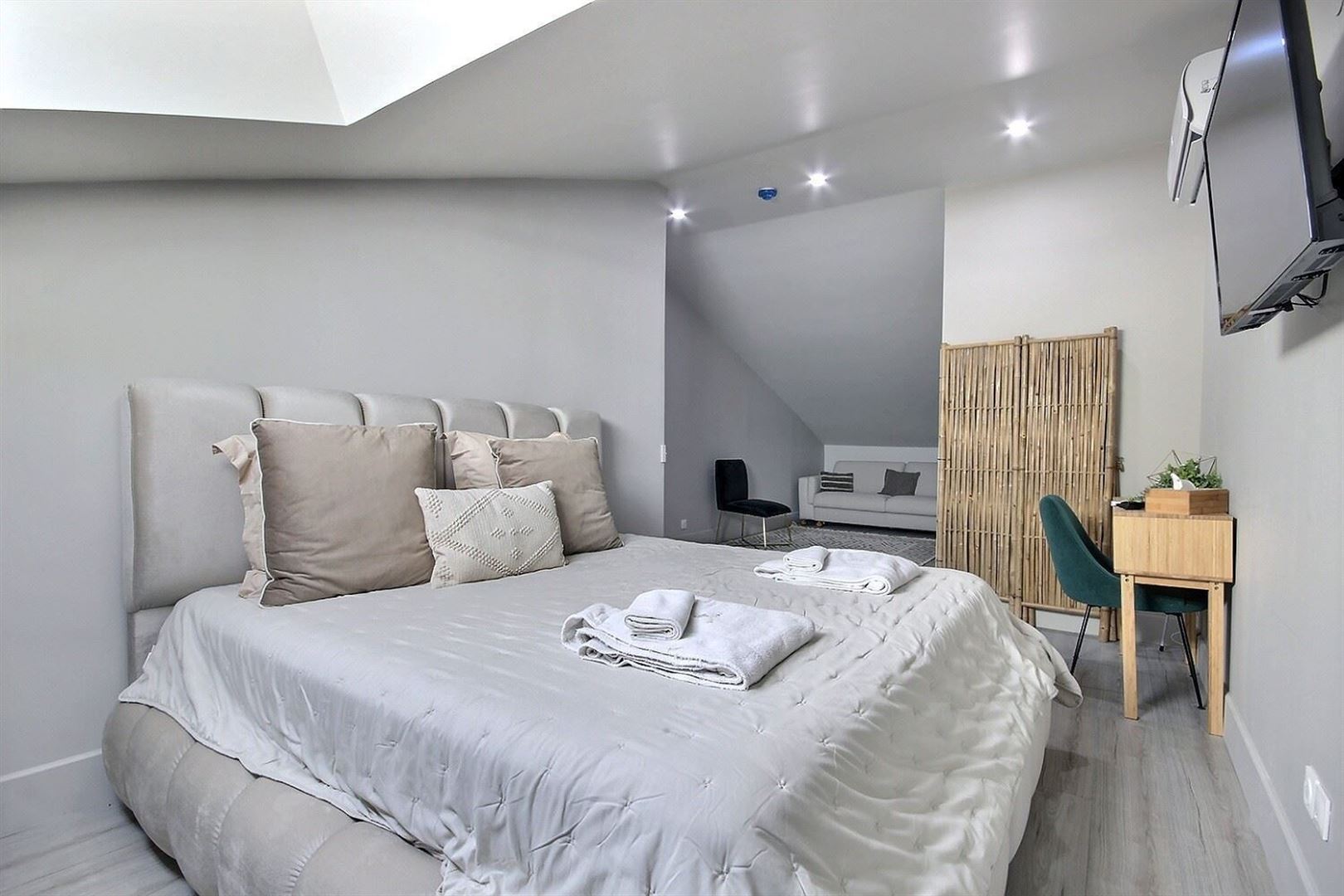 Actuellement aménagé en concept de location à la nuit, le bien se présente sous la forme d'un duplex meublé avec une atmosphère chaleureuse et soignée. Il se compose :