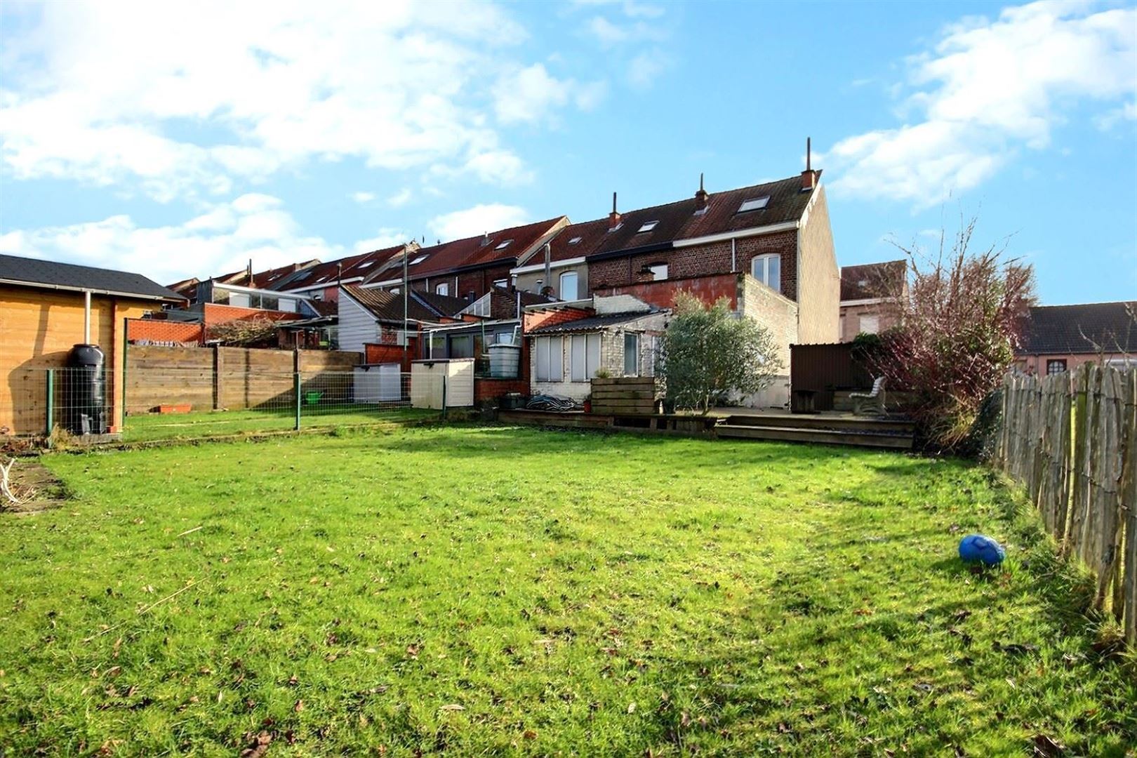 Terrasse en bois, jardin entièrement clôturé, remise idéale pour le stockage, garage une voiture ainsi qu'une place de parking privative.