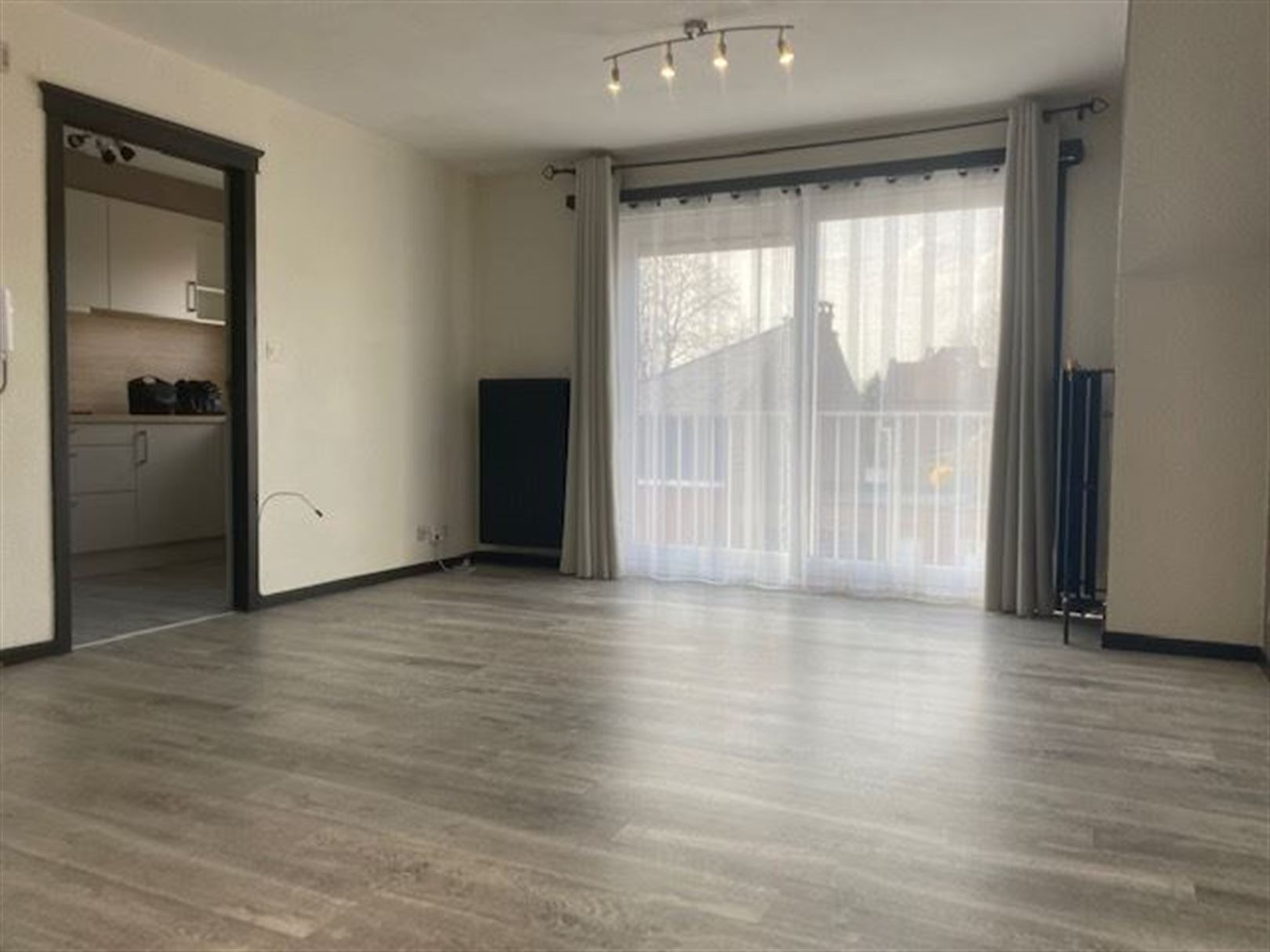 - Hall d'entrée, un living lumineux, une cuisine meublée (four, vitrocéramique, hotte, évier) et également d'un balcon.