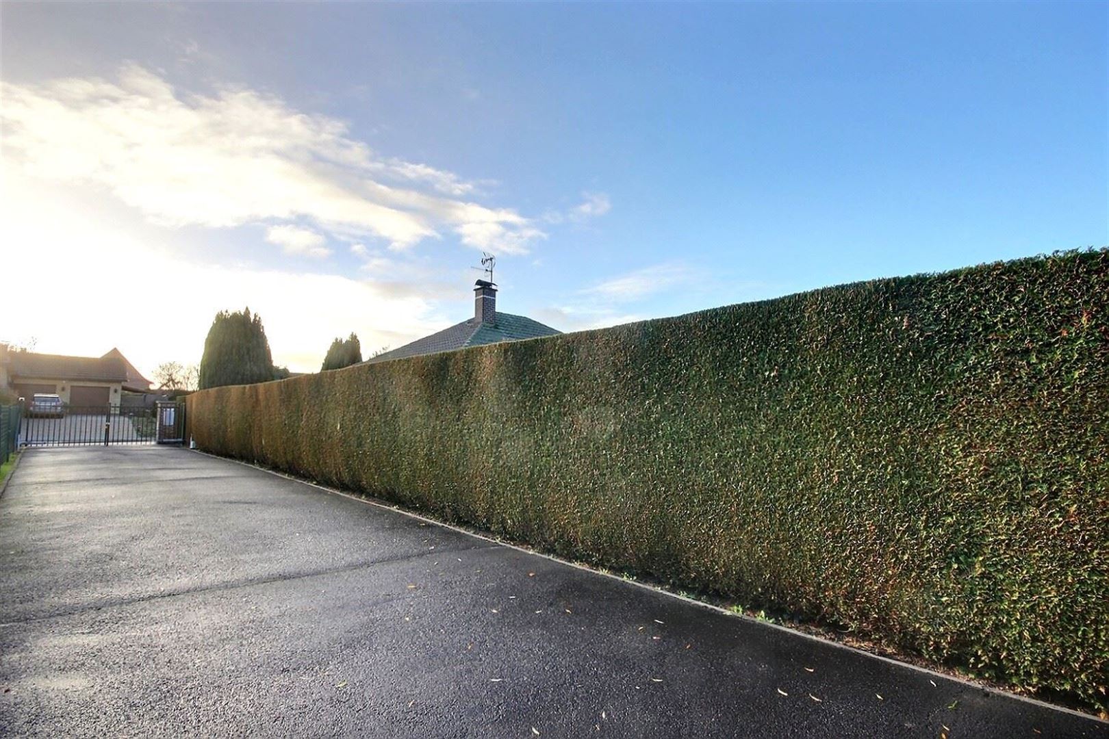 La maison est accessible via une longue allée avec un portail électrique en son début.