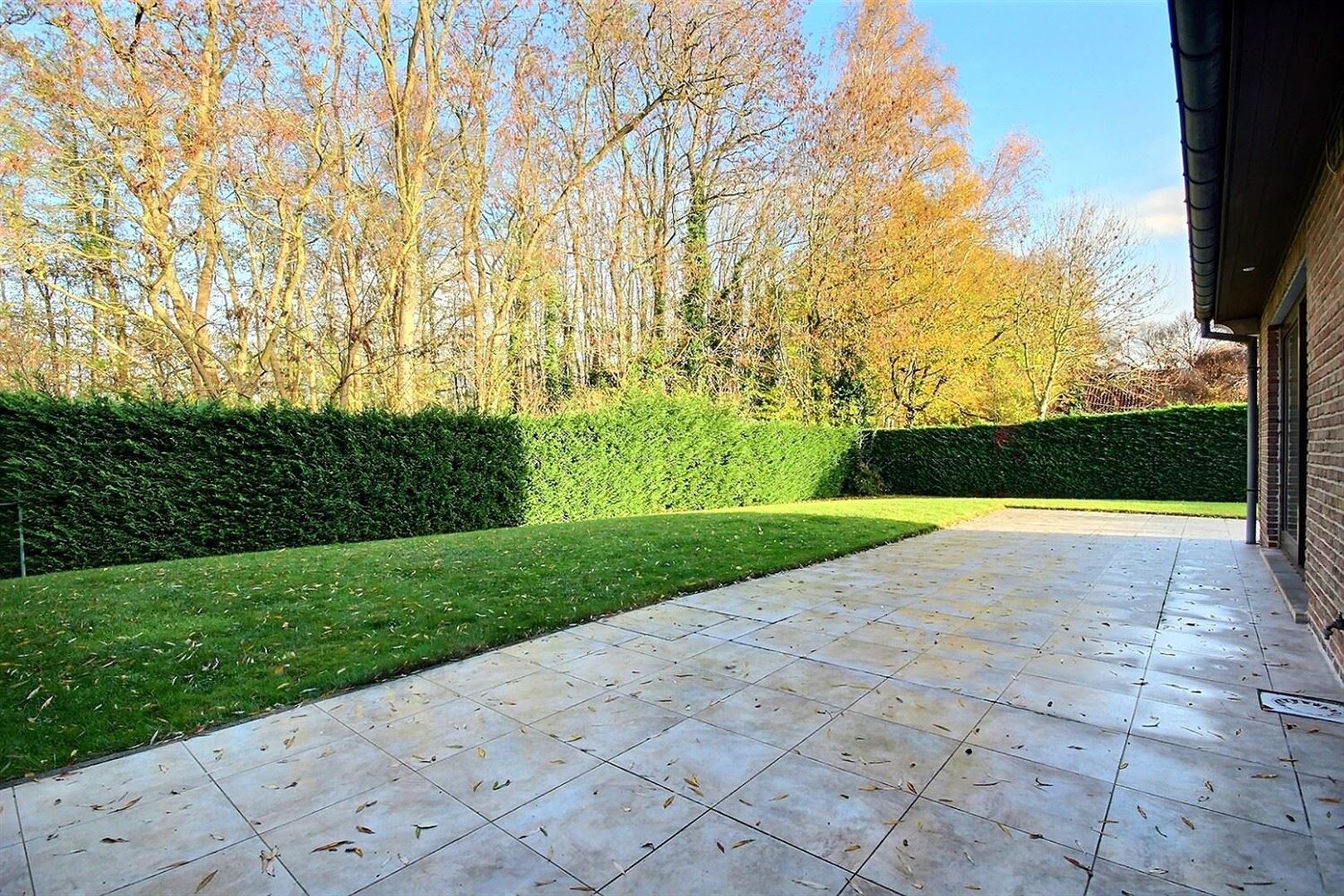 Magnifique jardin entièrement clôturé et idéalement exposé sans vis-à-vis avec une terrasse faisant le tour de la bâtisse.