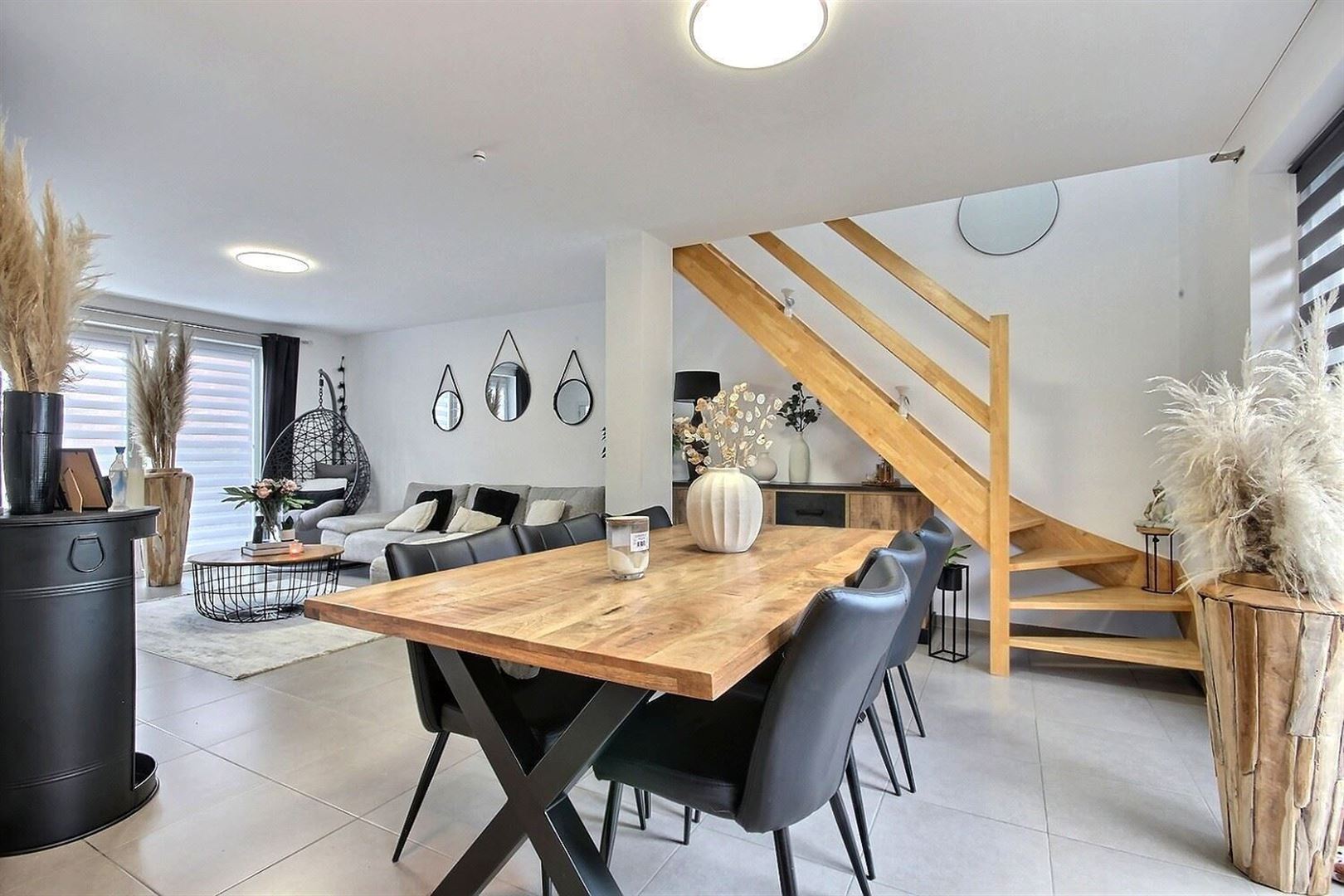 Le séjour lumineux de 34 m² s'ouvre harmonieusement sur une cuisine entièrement équipée, créant un espace de vie convivial et chaleureux. Une buanderie indépendante vient compléter le rez-de-chaussée.