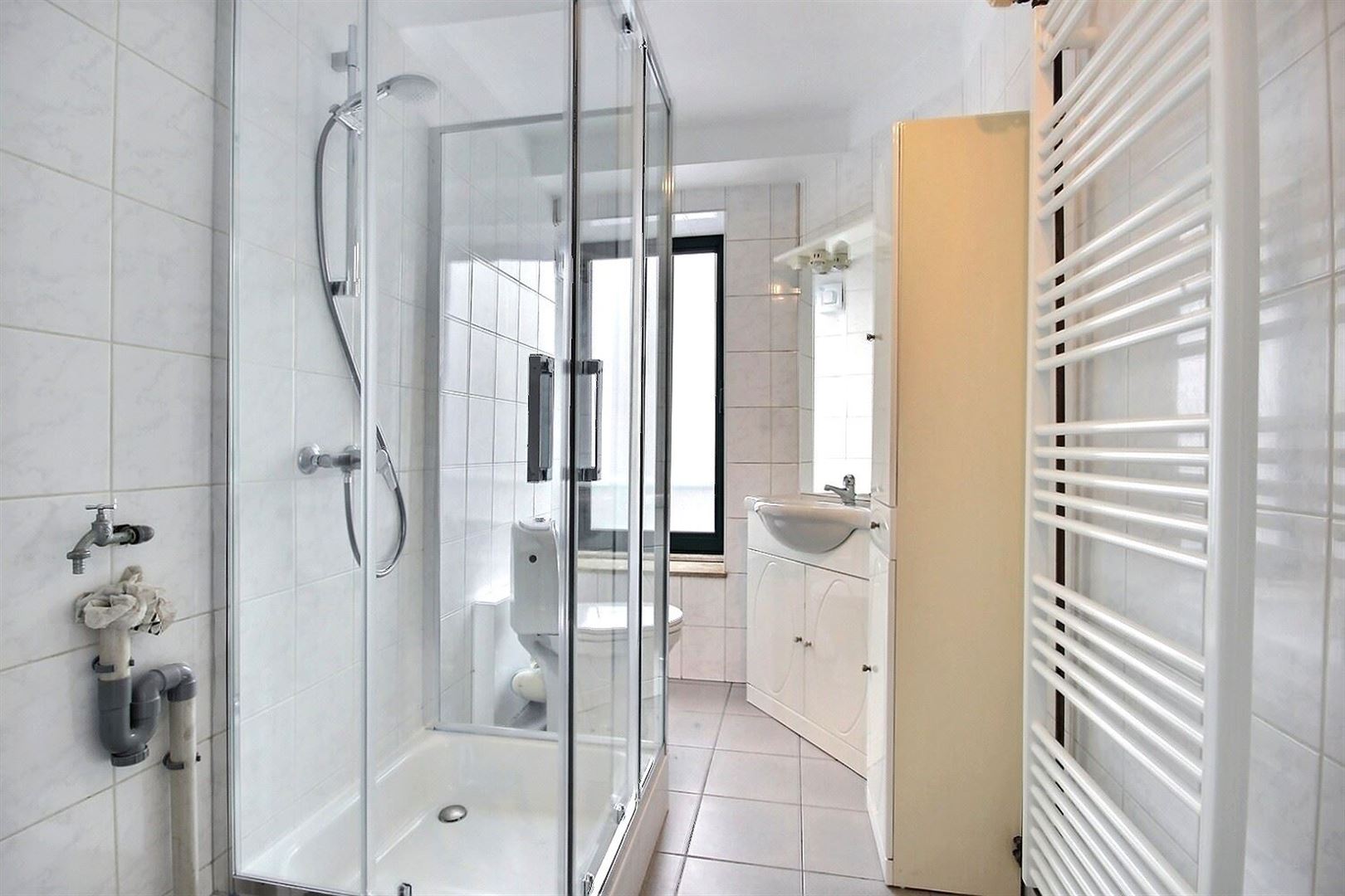 Un Living ouvert, une cuisine équipée (taque, four, hotte, évier), une salle de douche, lavobo, wc.
