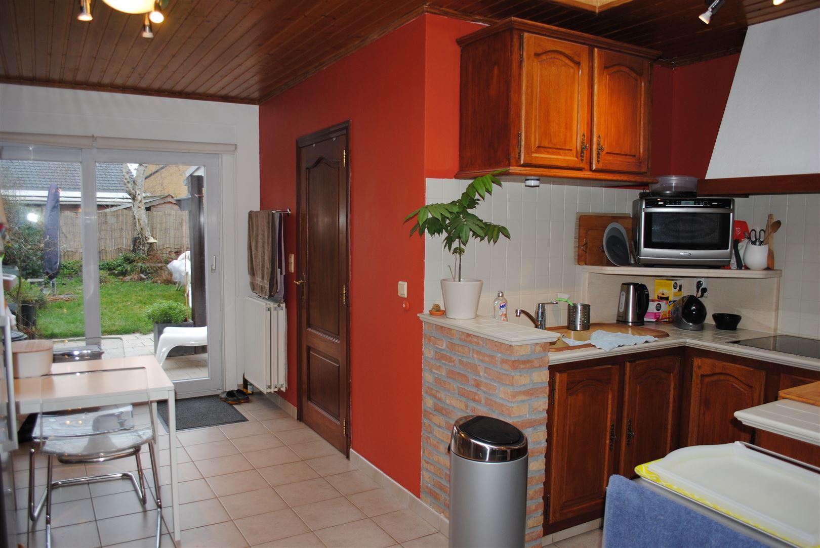 - Un hall d'entrée, un living avec escalier apparent, une cuisine avec coin repas avec baie vitrée donnant accès sur l'extérieur ainsi qu'une salle de bains avec baignoire.